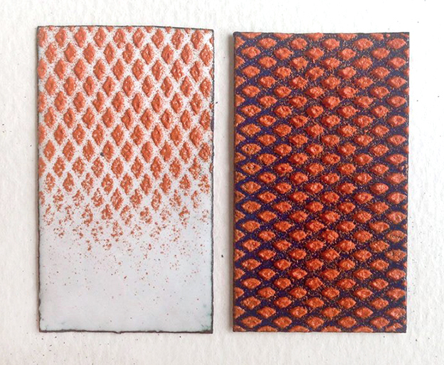 This workshop is aimed at anyone interested in working with enamel as a way of adding colour and texture to copper, silver or gold. With a focus on an experimental approach, different techniques including powdering, painting and drawing with enamel will be shown in several steps. You will have the opportunity to explore all of these techniques, using both opaque and transparent enamels. No previous knowledge is required.