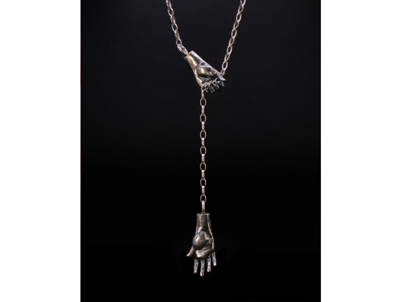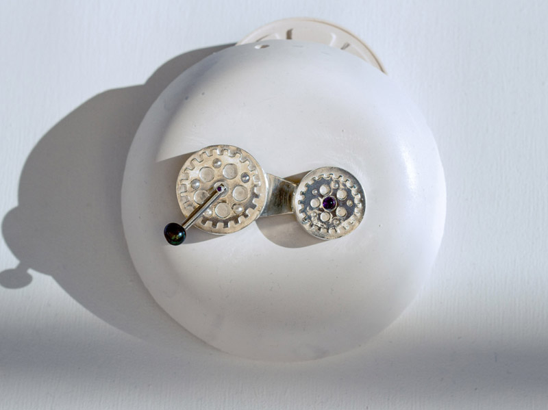 Oliver Monaghan (Monaghan-Mori) is a London-based multi-disciplinary artist working across jewellery, film & television. Oliver’s works in silver are semi-autobiographical in nature, translating a lived experience into humorous and graphic works.
