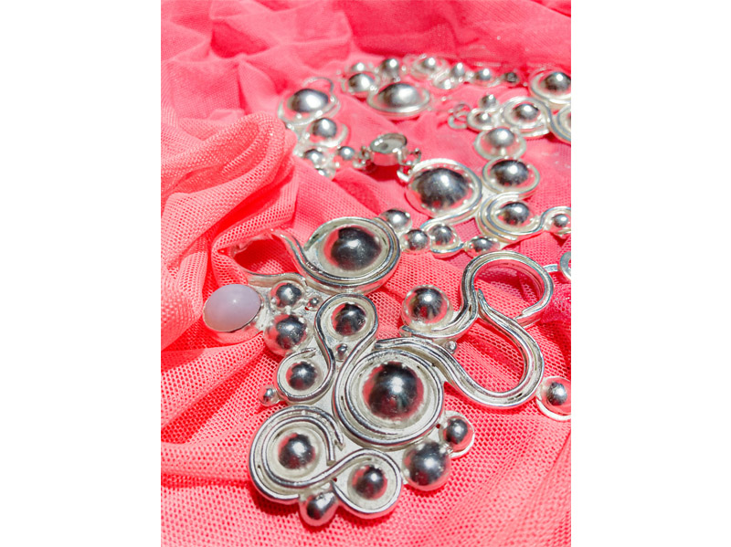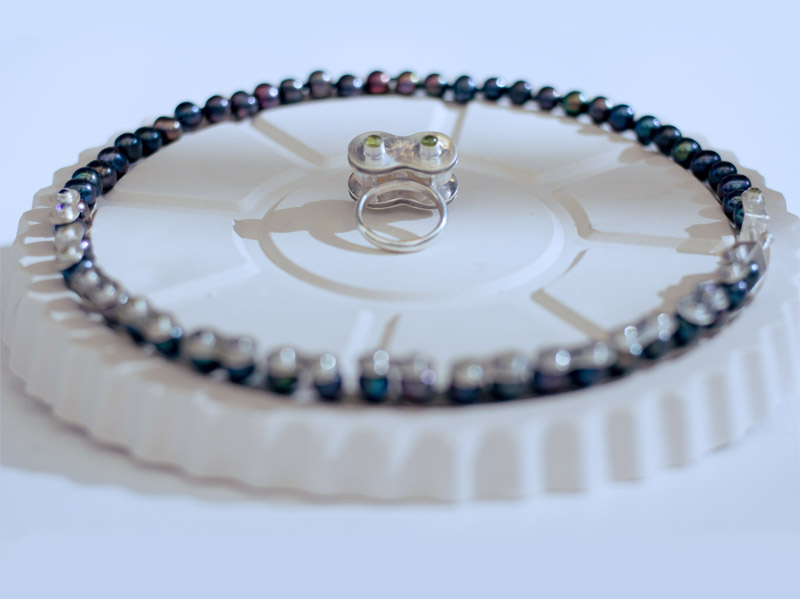Anastasia hails from Greece and takes inspiration from the deep sea where pearls grow as a parasite on oysters. Anastasia explores the dependent relationship of the pearl to the oyster in her debut collection Pearl Connection.