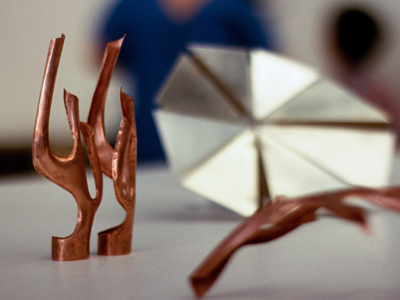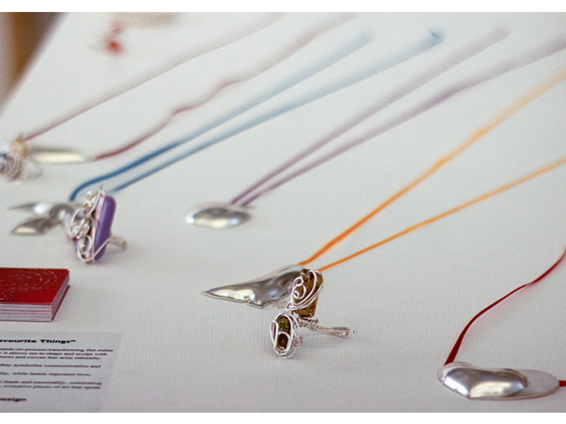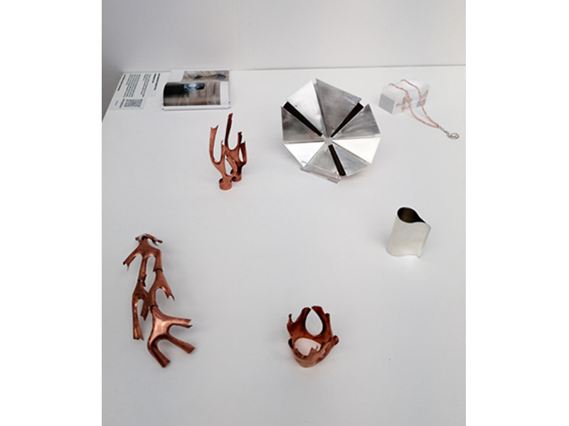 My work is experimental and conceptual combined to traditional techniques. The materials are silver and copper mixed to unconventional elements like nails, screws, found objects, spray paint and Atlantic salt. In my project I modify metal by oxidising, heating, dying and enamelling. My idea is that nothing stays the same – all changes and transforms and it’s an incredibly interesting process!