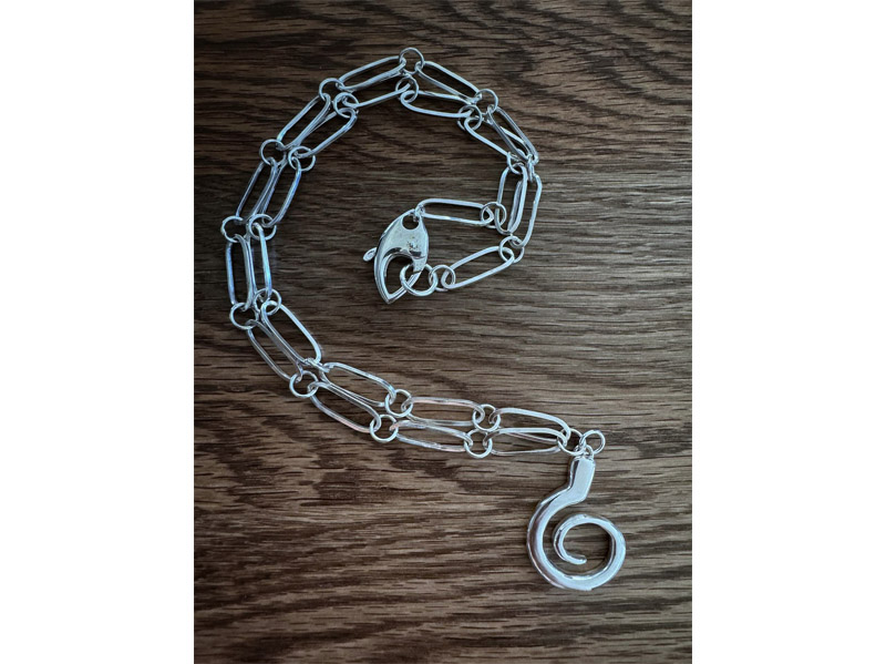 Liz is a yogi and interested in spirituality, philosophy and self care, which are all reflected in the meaning of her jewellery. With a degree in Fine Art Painting, Liz has found a new medium to paint with, using the conduction of the silver chains to create designs with the molten silver.