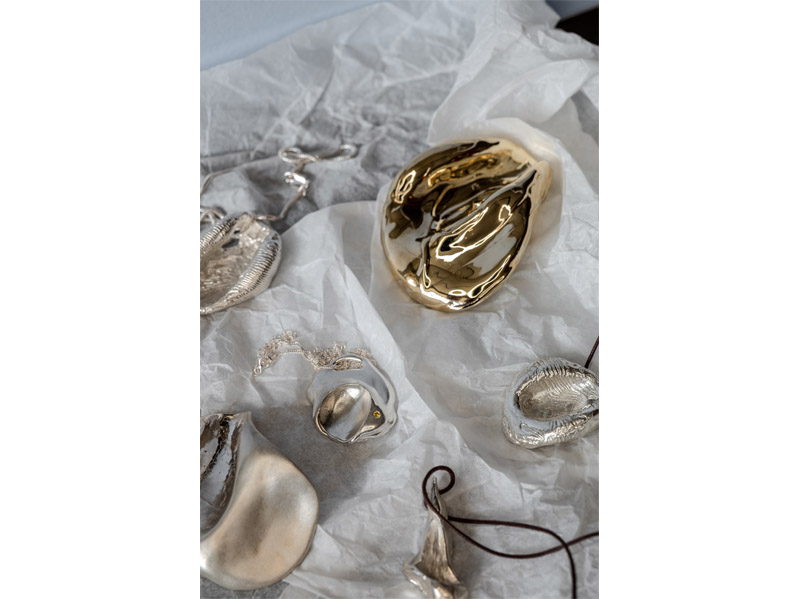 Alice has created pieces that afford the wearer the same sensations of fulfilment and ease that infuse her after a day spent by the sea. She has focused particularly on recreating fluidity, lightness and a sense of movement and has added pearls and abstract sea shell shapes in order to connect further with the concept.
