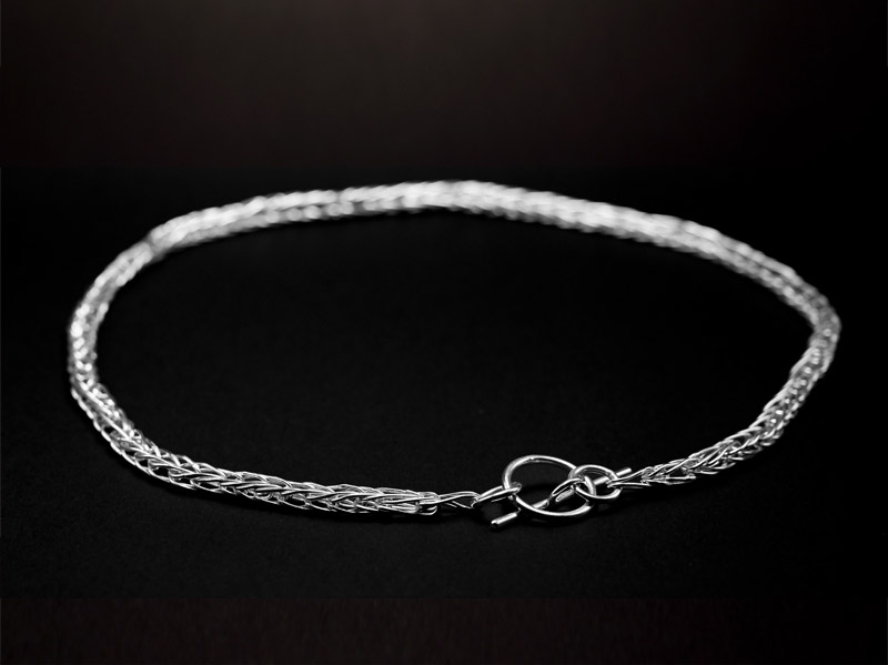 During a period of her own confusion Anne explored the emotions she felt, translating these in forms of mixed media including metals, wax, wire and leather. The collection links the internal heart meridian connecting the hand, neck and chest.