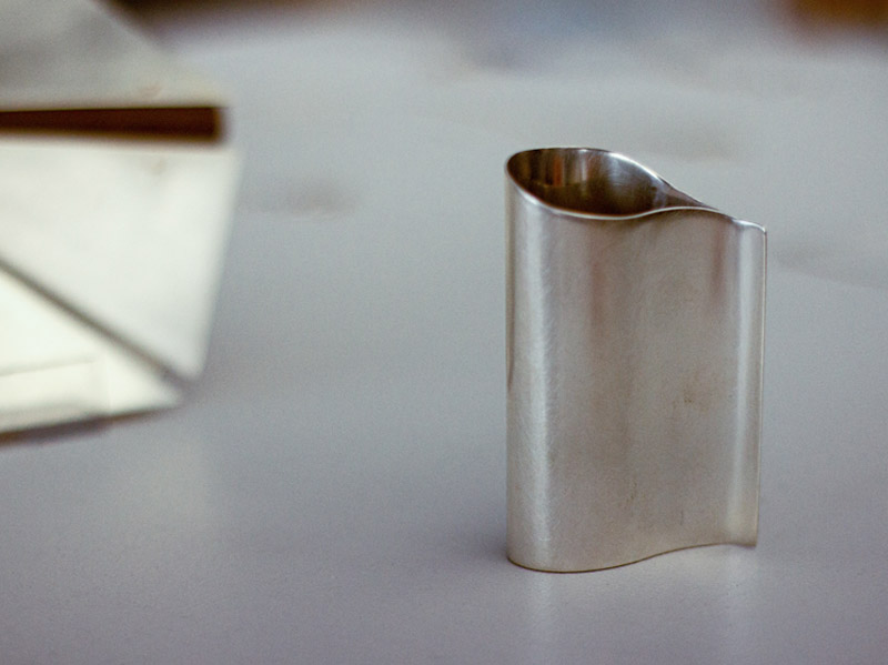 The sharp angles, shapes and lines that can be found in architecture are trademarks of Joanne’s collection. She enjoys manipulating solid materials, scoring and folding solid metal to form unexpected outcomes.