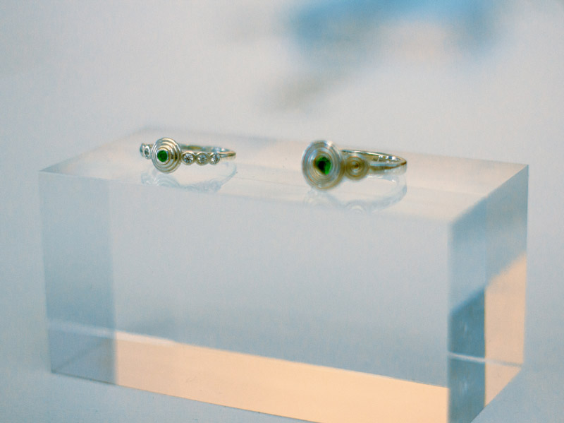 Jack presents a mixed selection of pieces taken from two collections. The Lava collection takes inspiration from the textures and movement of lava flows while pieces from the ‘Contrast’ collection explore different metals and colours on the same piece.