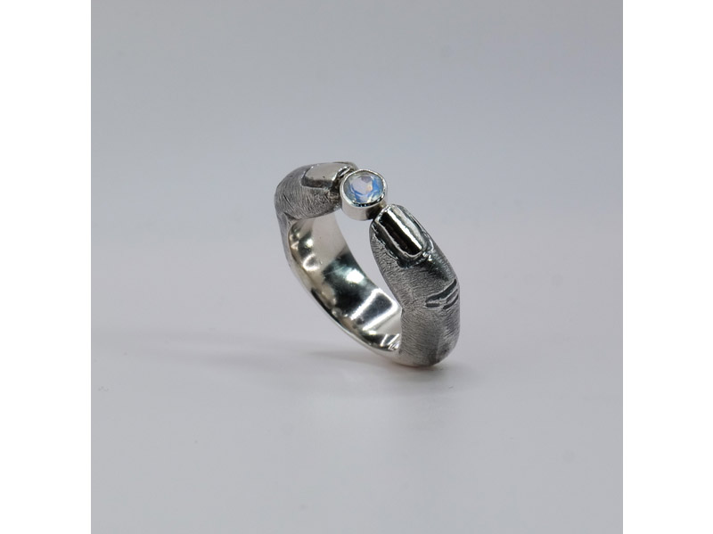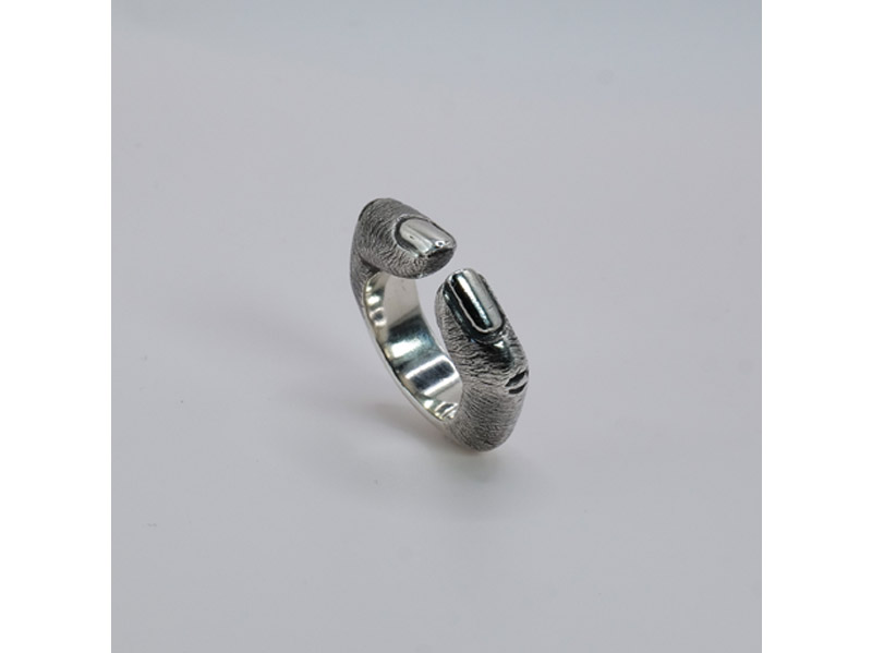 In the collection Arrival, Kate demonstrates the journey of life and its stages. She creates jewellery with fluid organic shapes using the lost wax casting process as well as angular 3D rigid pieces created using fine wire and traditional soldering techniques, re-creating the different aspects of life’s journey.
